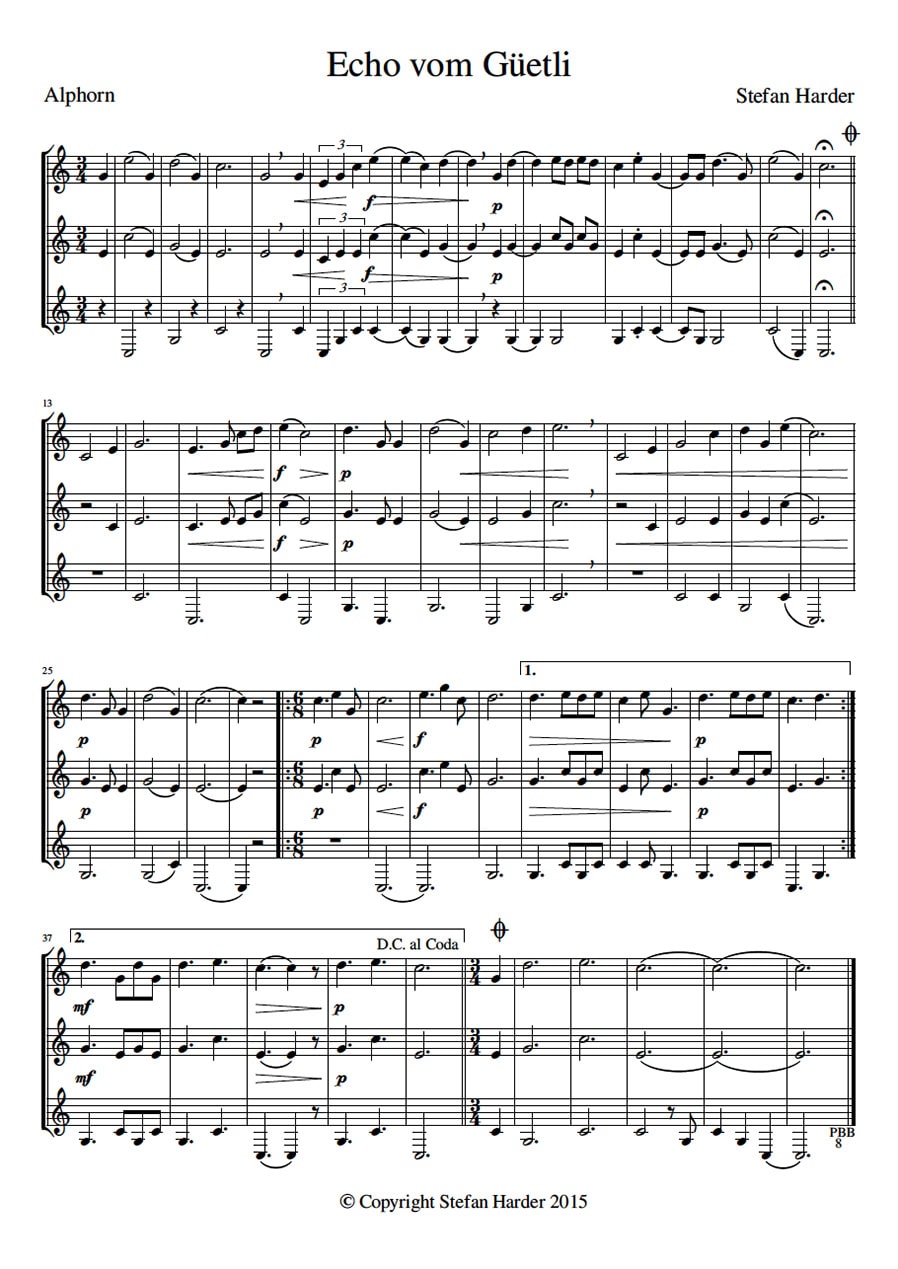 Eigenkompositionen aus unserem Repertoire, die frei heruntergeladen und für musikalische Zwecke genutzt werden können. Bei öffentlichen Aufführungen sind diese aufgrund des Urheberrechts bei der SUISA anzumelden.